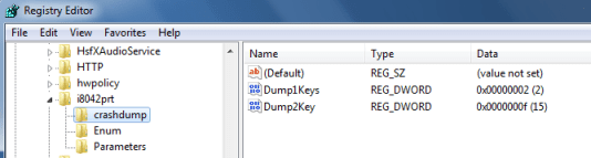 1Windows XP does not support this means of crashing the OS via a USB keyboard, only Win7, Server 2008, and Server 2003 SP2 or SP1 with Hotfix 244139 and Vista SP1 with Hotifx 971284. You can also use the Dump Configurator from CodePlex here.