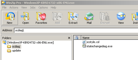 Note, to run this with Service pack 3, you need to extract the files from self-extracting exe instead of running directly. You can do this by opening with WinZip or the another zip program. Open the scdiag folder and extract statechangediag.exe and scstyle.xls to a folder.
