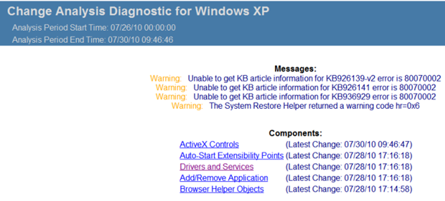 Change Analysis Diagnostic for Windows XP