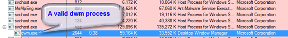 And, looking at dwm.exe again, I see it has an open port. It was likely communicating with any number of URLs like those in shell.exe, likely attempting to download the same dlls that were being deleting: