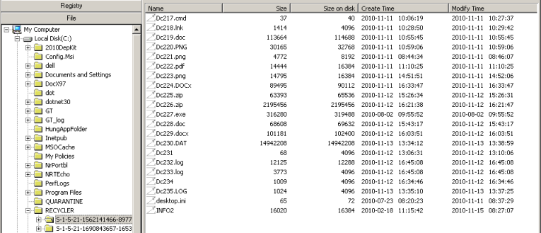 Convinced, I went into the command shell since it revealed the “super” hidden files, navigated to the recycle bin/SID of the user and deleted everything. The next day I continued troubleshooting the same workstation again and, amazingly, came across another one, Dc29.exe: