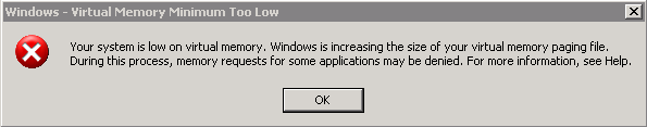 Multiple instances of Internet Explorer were opened until the page file grew to its minimum defined size of 25MBs, which kicked off a virtual memory warning.