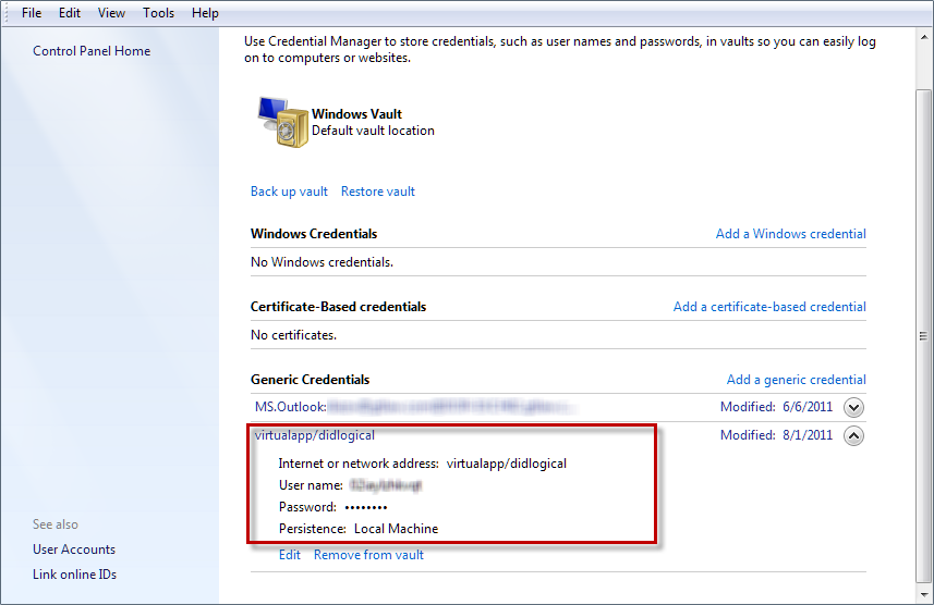 I came across this the other day while browsing the Credentials Manager in Windows 7: