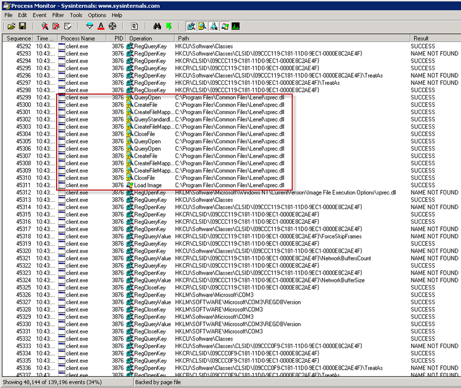 There is a popular saying among advanced Windows troubleshooters: “When in doubt, run Process Monitor.” So I fired it up, set a filter to trace the only operations on the crashing app, waited for the app to crash, and examined the log file. Nothing really stood out, and using the Count Occurrences feature didn’t reveal any results that, at first glance, might indicate a problem. With no idea what I might be filtering for, I started to manually scan the log file from the bottom up. Maybe some operation would stand out. That could be quite daunting as I was dealing with tens of thousands of operations. Luckily, I persist just long enough to find this a few minutes later: