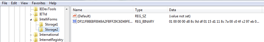 On the flipside, when you delete form data or password data from within Internet Explorer, the Storage1 or Storage2 key is deleted in the registry2.