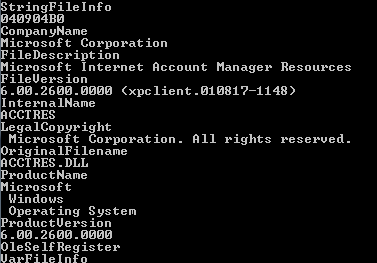 This temp file looks like a DLL itself, specifically the Microsoft Internet Account Manager Resources module (acctres.dll). Maybe I can get some more info on it by looking at it with another utility. I try out DLL Export Viewer hoping some of the functions may allude to its purpose and notice something that hints to why the IE logo is not displaying in About Internet Explorer: