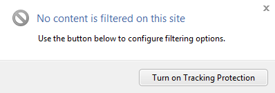 Some of the content, images, ads, and analytics that you see on the websites you visit are provided by outside or third-party websites. While this content can provide value to both you and your favorite websites, these third-party websites have the ability to potentially track your behavior across multiple sites. Tracking Protection provides you an added level of control and choice about the information that third-party websites can potentially use to track your browsing activity.
