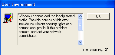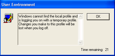 This was followed by “Windows cannot find the local profile and is logging you on with a temporary profile…”