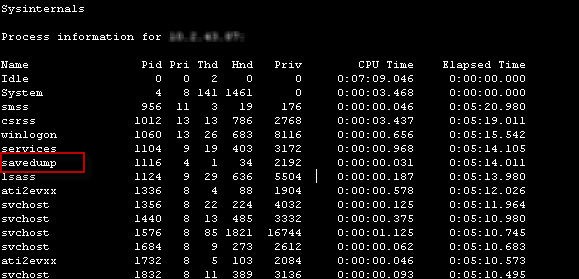 This was initially described as a log off each time the user opened Outlook. This was the first time I heard of Outlook logging someone off their system when it was opened. This sparked my curiosity, of course, so I asked the techs working on this to leave it alone until I had a chance to look after hours. I started by connecting remotely to the Windows Event Viewer for the problem workstation to see if anything obvious stood out. After about a minute, the MMC console became hung and I could no longer browse events. I thought maybe the workstation became disconnected from the network, so I waited and tried again a few minutes later. I resumed browsing the event logs … only to get disconnected again. Logging in via RDP or VNC was also a no go, as I was getting disconnected after about 2 minutes, barely enough time to get pass the initial desktop and application loading and analyze what was happening. My next approach was to query the workstation for all the running processes via PsList from SysInternals (using the Front End for PsTools); maybe something might stand out and allude to what was happening: