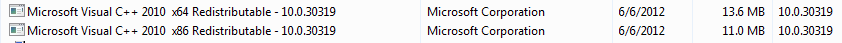 It looks like there is an issue with the version of the Microsoft Visual C++ Redistributable 2010 x64 currently installed on the system.