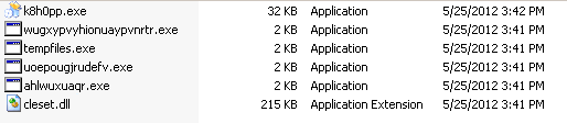 Next, I wanted to see how usbhc.sys found its way into the system. Likely it was the payload delivered by means of an executable that had run earlier. Malware exes are not too difficult to locate. They often reside in the user profile temp folder or some other sub folder within and have what seem like randomly generated alpha-numeric names. Sure enough, within C:\Documents and Settings\username\Local Settings\Temp, there were a few suspicious exes, all with the same creation date: