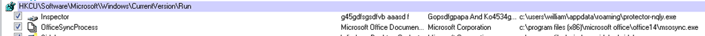You can see the fake AV exe goes by the name of Protector-.exe. A random four letter string follows the hyphen and this variant writes itself to the users roaming profile of C:\Users\Username\AppData\Roaming in Vista\Win7 or C:\Documents & Settings\Username\Application Data in XP. It also creates an autorun in HKCU\Software\Microsoft\Windows\CurrentVersion\Run. Additionally, it launches mshta.exe, the Microsoft HTML application host: