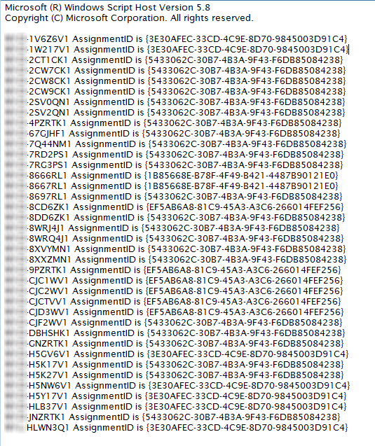 Convinced this was culprit, I put together a script to query a few of the computer OUs in AD to get their assignment IDs. Looking at one of our larger offices, I saw specifically three assignmentIDs reported in the CCM_DeploymentTaskEx1 instance for all of the workstations not installing updates: