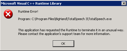 One of our helpdesk technician’s in a remote office reached out to me recently and asked me to assist with an application that suddenly started crashing on him with the following error: “Microsoft Visual C++ Runtime Library. Runtime Error! This application has requested the Runtime to terminate it in an unusual way…”